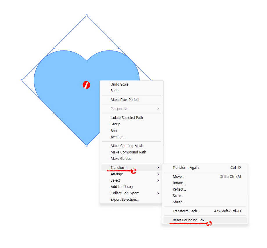 2-2. 혹은 개체 우클릭 - Transform - Reset Bounding Box를 눌러주세요.