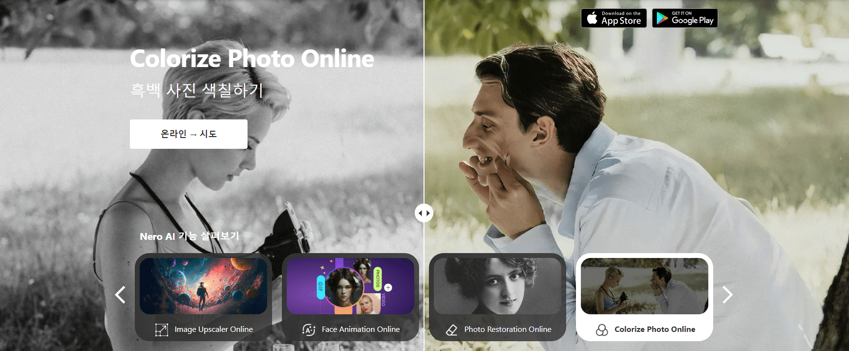 마지막으로 Colorize Photo로 흑백 사진을 컬러로 바꿔주는 기능입니다. 이미지가 선명할 수록 잘 적용되는 것 같습니다. 오래된 사진이라면 Photo Restoration으로 복원을 먼저 한 후 사용하는게 좋을 듯 합니다.